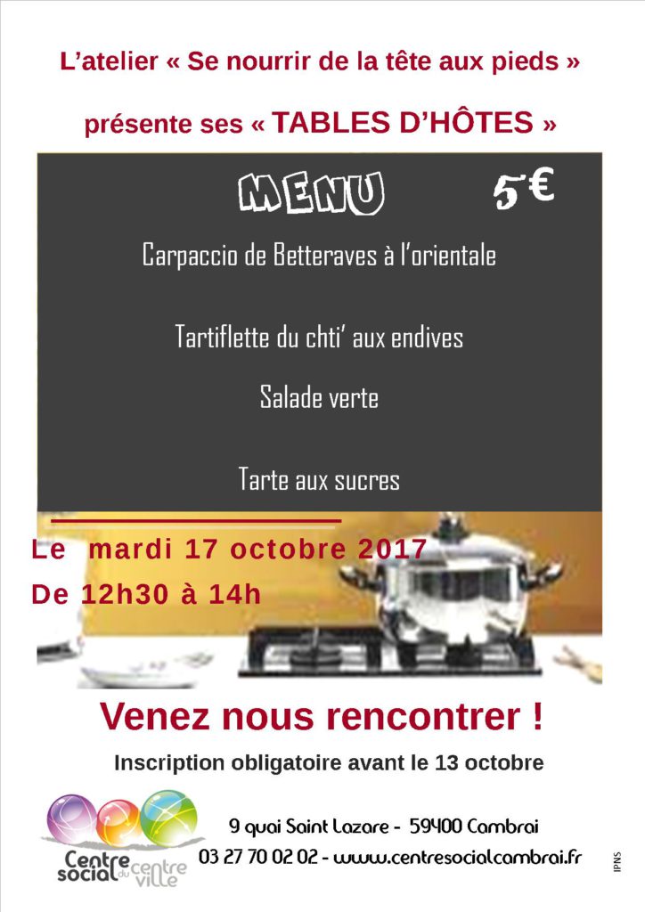TABLES D’HÔTES DU MARDI 17 OCTOBRE 2017